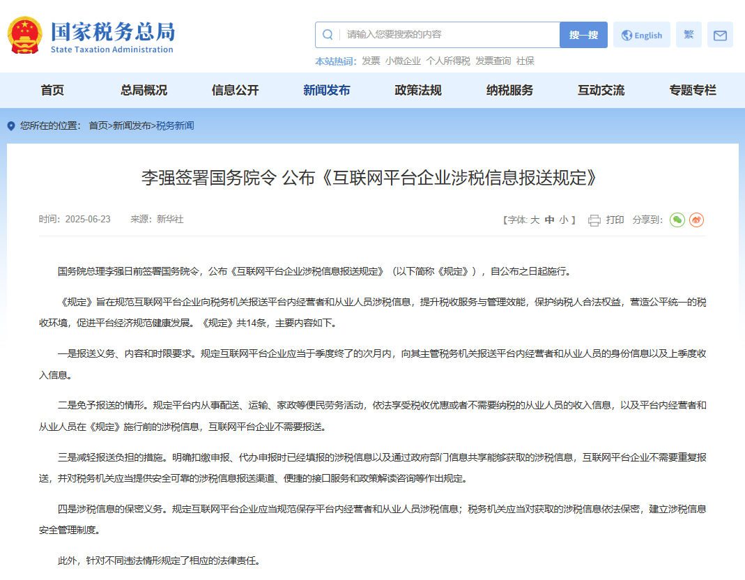 密切關注!《互聯網平臺企業涉稅信息報送規定》最新官方解讀(附薪動要點梳理)