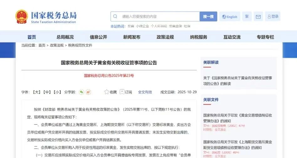 近日,黃金稅收新政落地,引發市場廣泛關注,各家的解讀眾說紛紜,其實核心不外乎以下三點: